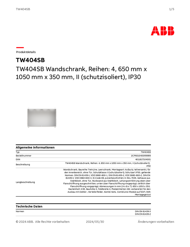 2CPX010400R9999 Pusta szafka Striebel & John TW404SB 2CPX010400R9999, 1050 mm x 650 mm...