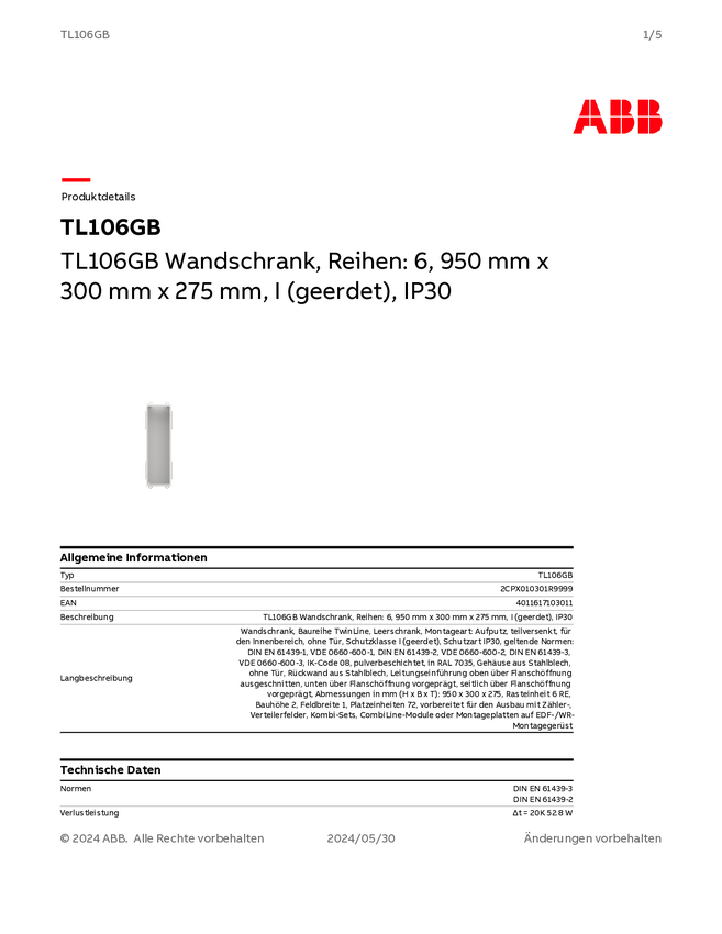 2CPX010301R9999 Pusta szafka Striebel & John TL106GB 2CPX010301R9999, 300 mm x 950 mm x...