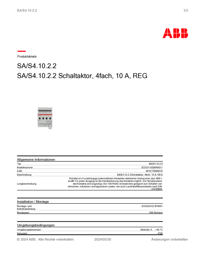 2CDG110258R0011 Element wykonawczy ABB 2CDG110258R0011 SA/S4.10.2.2