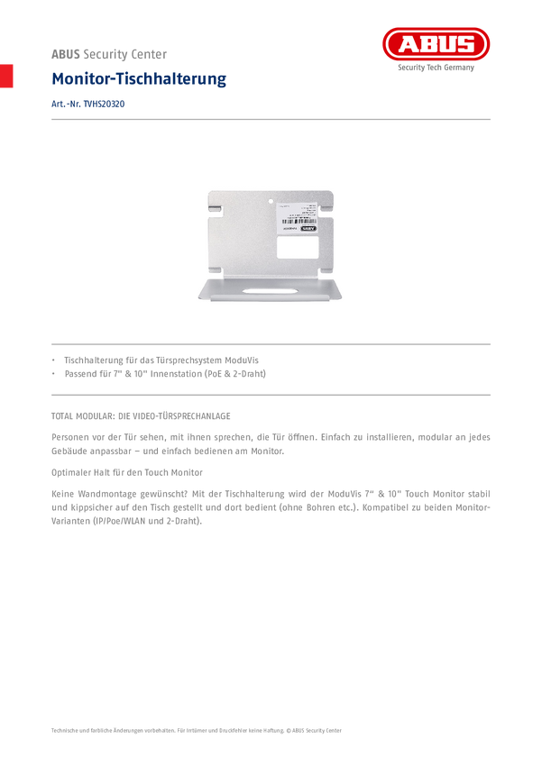 TVHS20320 ABUS ABUS TVHS20320 Monitor-Tischhalterung Uchwyt biurkowy do monitora TVHS...