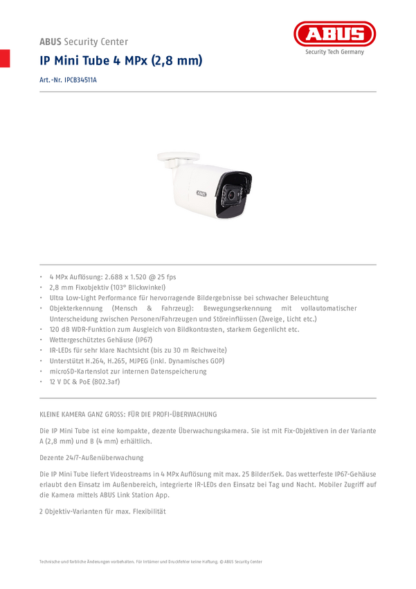 IPCB34511A Kamera monitoringu ABUS neu IPCB34511A, 1 szt.