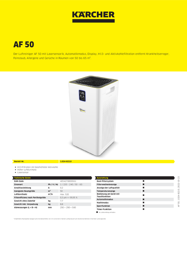 1.024-822.0 Kärcher Professional 1.024-822.0 AF 50 Oczyszczacz powietrza 50 m² biały, c...