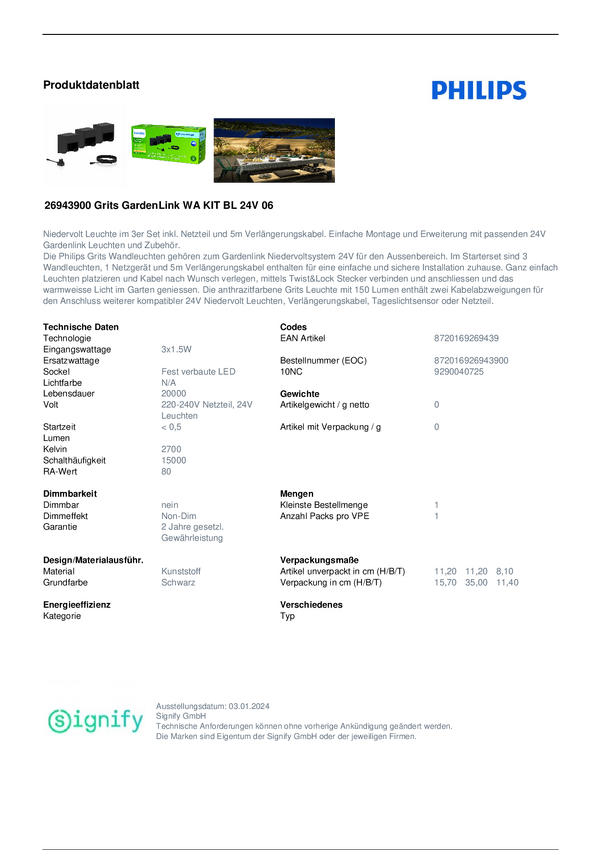 8720169269439 Reflektor sufitowy LED Philips LED Grits GardenLink 8720169269439 4.5 W 450...