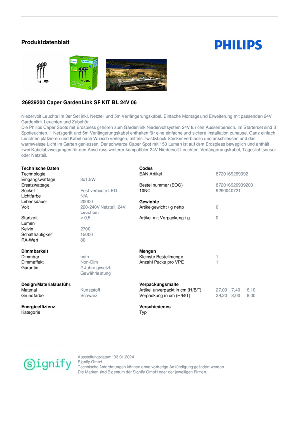 8720169269392 Reflektor sufitowy LED Philips LED Caper GardenLink 8720169269392 4.5 W 450...