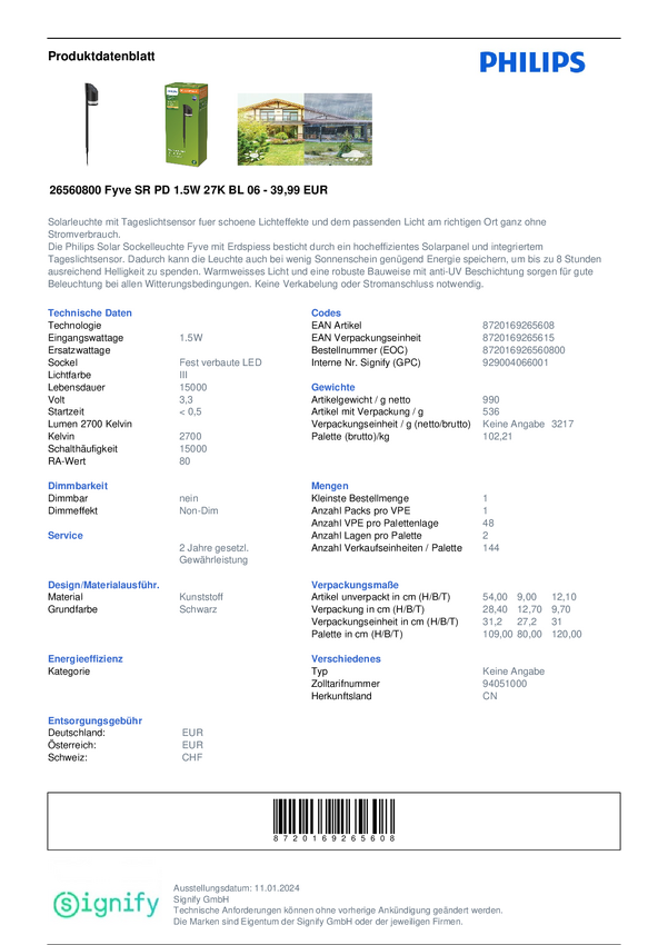 8720169265608 Solarna lampka ogrodowa Philips LED Fyve 8720169265608 1.5 W 200.00 lm