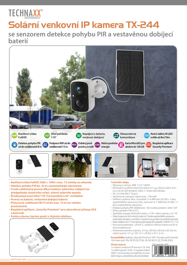 5070 Kamera monitoringu, miniaturowa IP Technaxx TX-244 5070 WLAN, bezprzewodowa