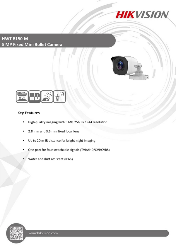 Kamera monitoringu HiWatch HWT-B150-M(2,8mm) AHD, HD-CVI, HD-TVI, analogowy 2560 x 1944 px