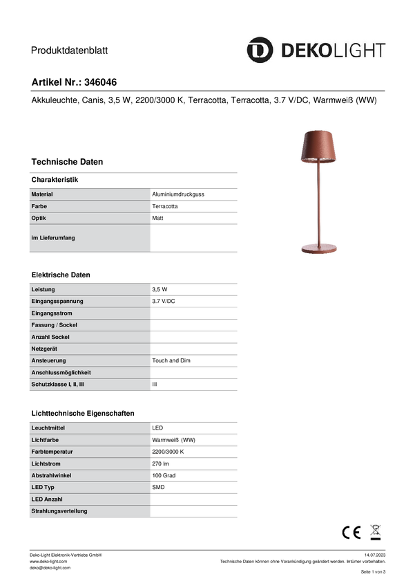 346046 Akumulatorowa lampka stołowa Deko Light Canis 346046 3.5 W terakotowy