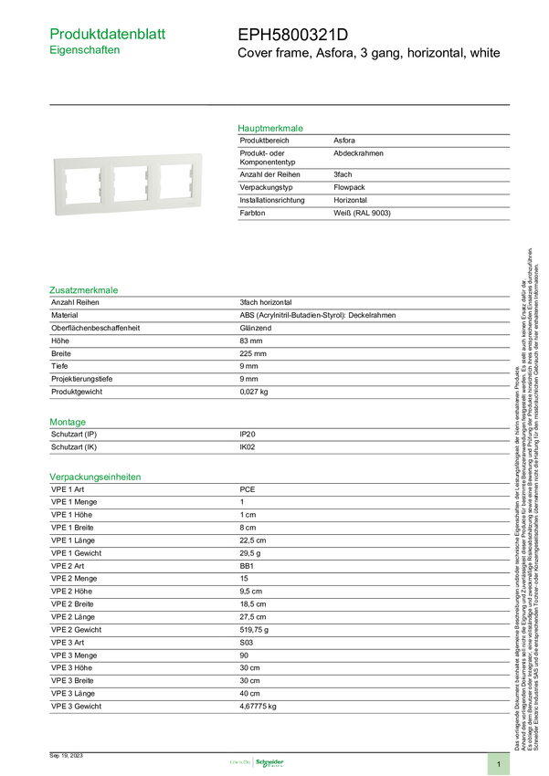 EPH5800321D Schneider Electric Ramka Asfora biały (RAL 9003) EPH5800321D