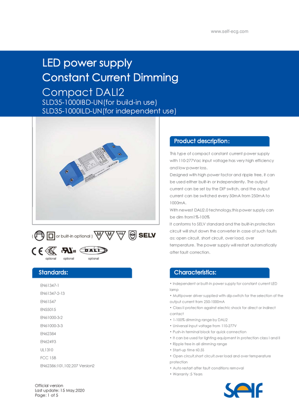 SLD35-1000IBD-UN Self Electronics SLD35-1000IBD-UN Transformator LED 35 W 1 A 8 - 42 V Ściem...
