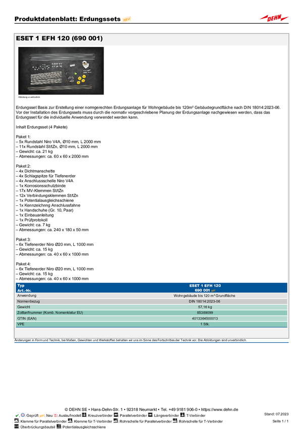 DEHN 690001 ESET 1 EFH 120 Basis Uziemienie 1 zest.