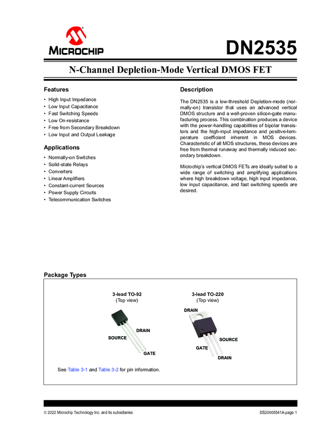 DN2535 N-Channel Depletion-Mode Vertical DMOS FET Data Sheet