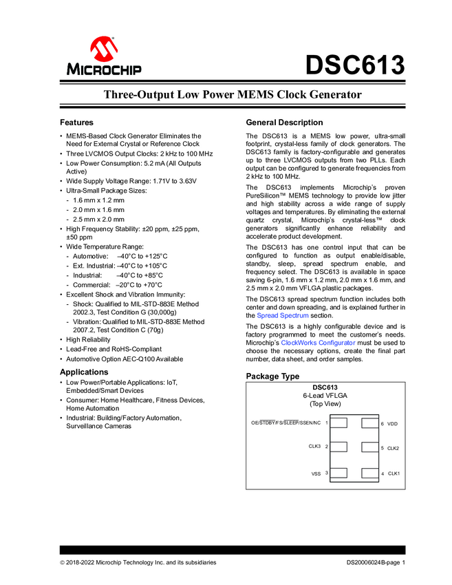 DSC613 - Three-Output Low Power MEMS Clock Generator