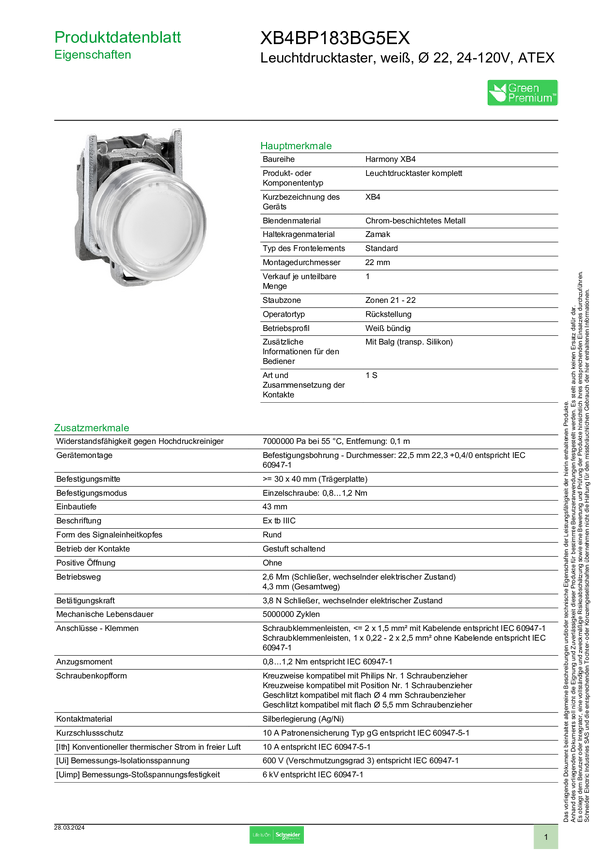 Schneider Electric XB4BP183BG5EX Przycisk podświetlany 1 szt.
