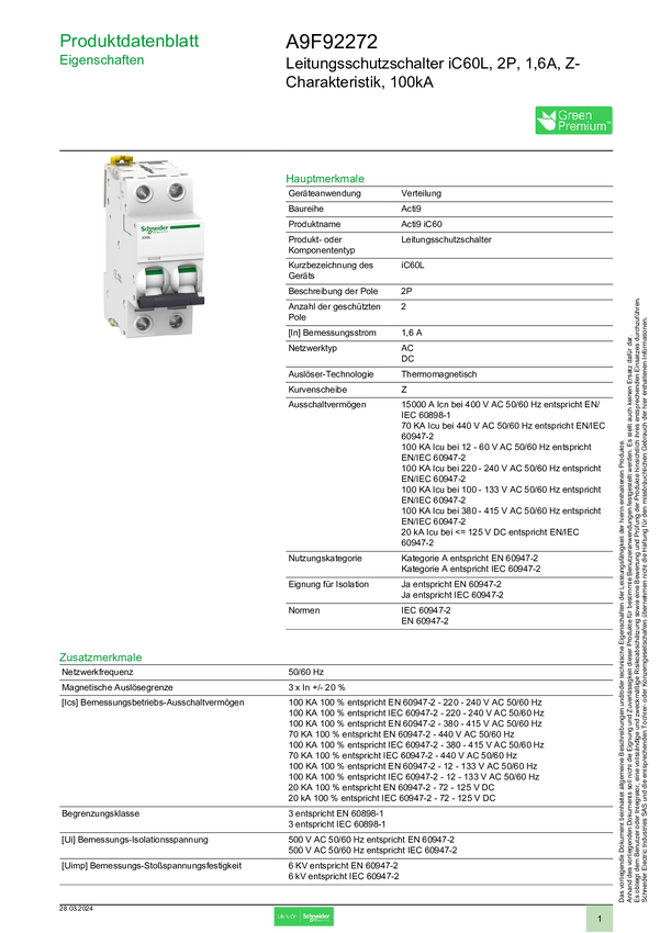 Schneider Electric A9F92272 Wyłącznik automatyczny