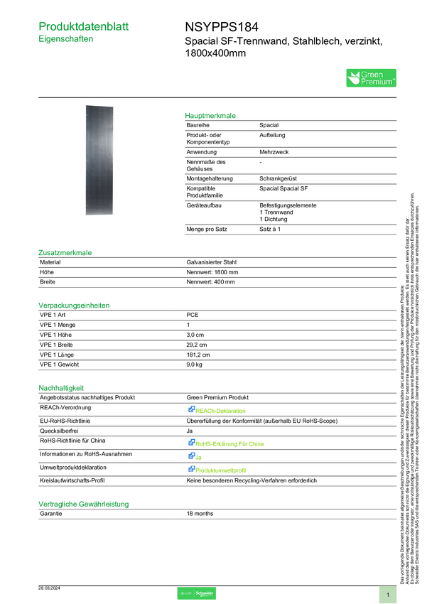 Schneider Electric NSYPPS184 Akcesoria rozdzielacza stal 1 szt.