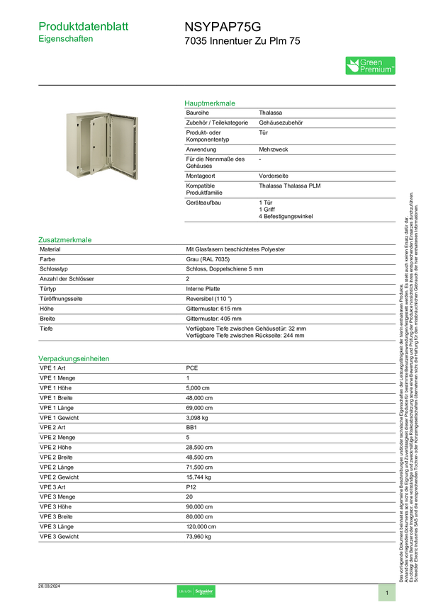 NSYPAP75G Schneider Electric NSYPAP75G Drzwi metalowe plastik szary 1 szt.