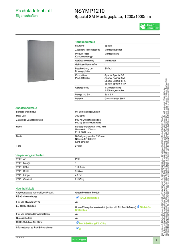 NSYMP1210 Schneider Electric NSYMP1210 Płyta montażowa stal 1 szt.