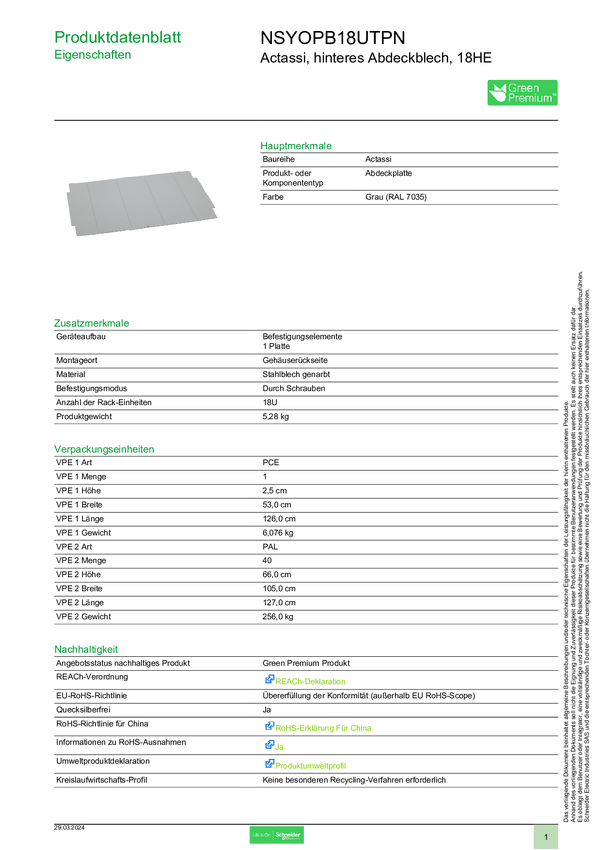 NSYOPB18UTPN Schneider Electric NSYOPB18UTPN Akcesoria rozdzielacza stal szary 1 szt.