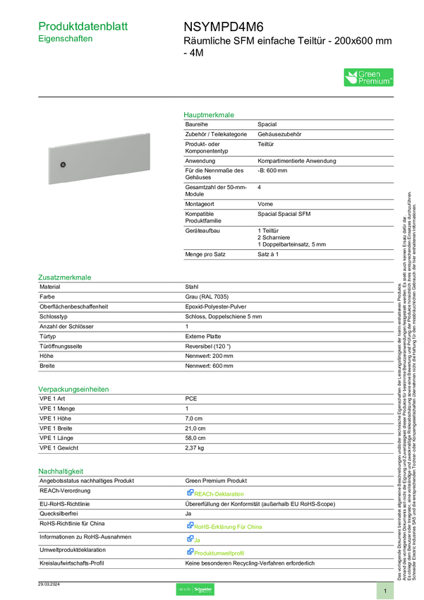 NSYMPD4M6 Schneider Electric NSYMPD4M6 Drzwi metalowe 1 szt.