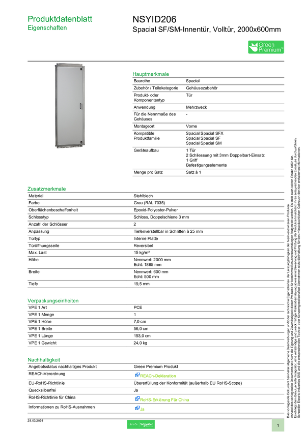 Schneider Electric NSYID206 Drzwi metalowe 1 szt.