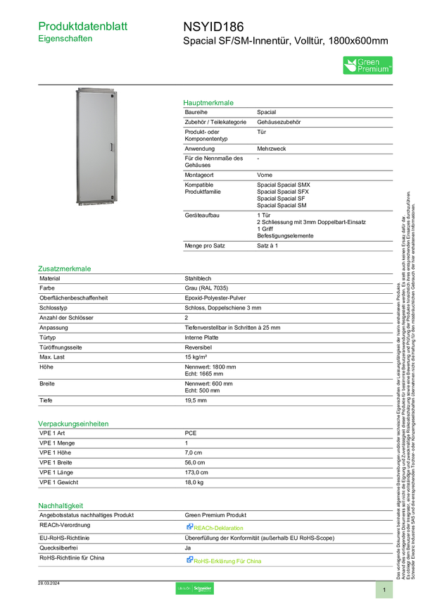 NSYID186 Schneider Electric NSYID186 Drzwi metalowe 1 szt.