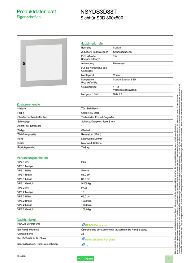 NSYDS3D88T Schneider Electric NSYDS3D88T Drzwi metalowe 1 szt.