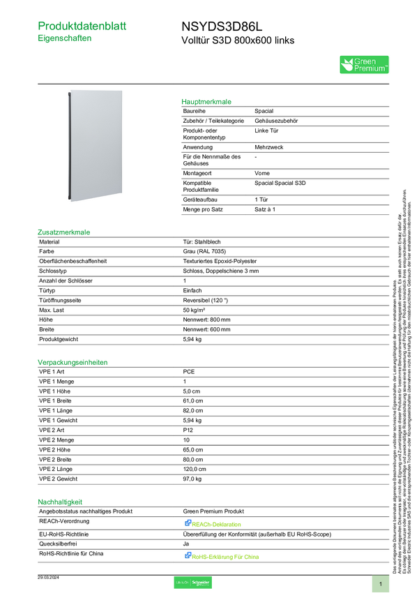 Schneider Electric NSYDS3D86L Drzwi metalowe 1 szt.