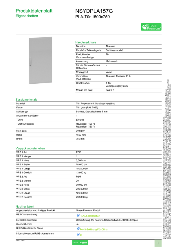 Schneider Electric NSYDPLA157G Drzwi metalowe 1 szt.