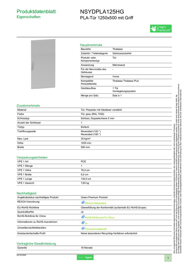 NSYDPLA125HG Schneider Electric NSYDPLA125HG Drzwi metalowe plastik szary 1 szt.