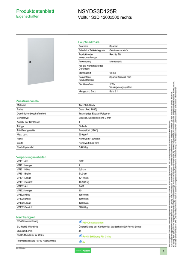 Schneider Electric NSYDS3D125R Drzwi metalowe 1 szt.