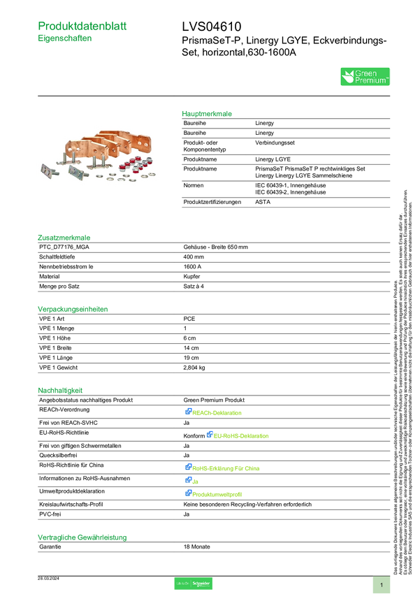 LVS04610 Schneider Electric LVS04610 Akcesoria rozdzielacza 1 szt.