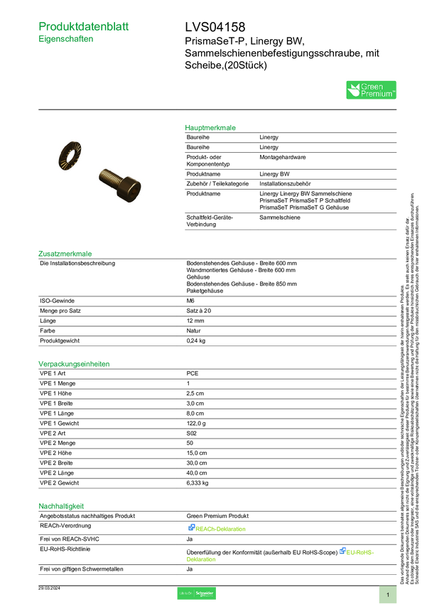 LVS04158 Schneider Electric LVS04158 Akcesoria rozdzielacza 1 szt.