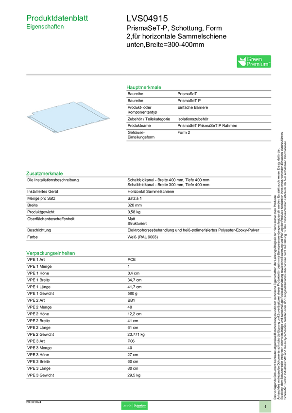 LVS04915 Schneider Electric LVS04915 Akcesoria rozdzielacza 1 szt.