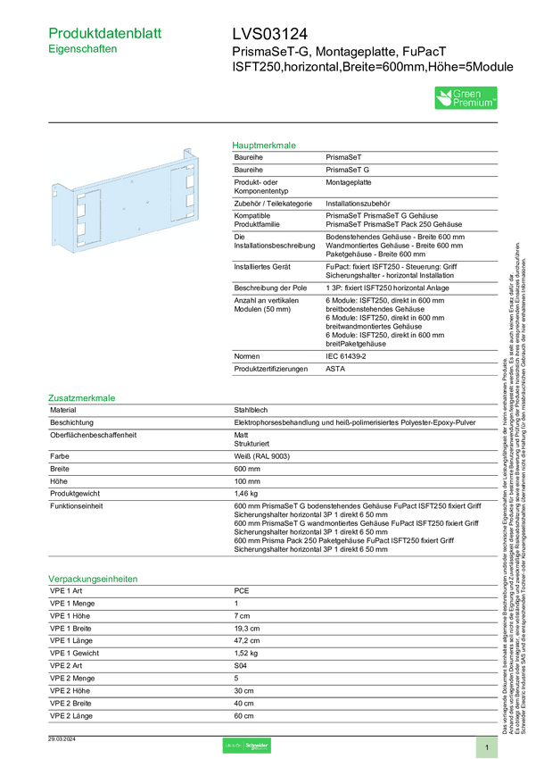 LVS03124 Schneider Electric LVS03124 Płyta montażowa 1 szt.