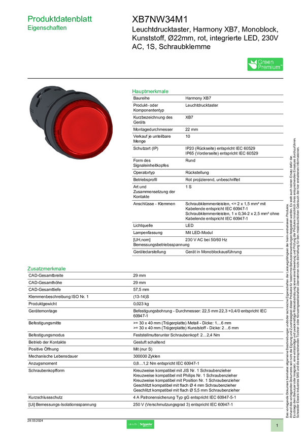 XB7NW34M1 Schneider Electric XB7NW34M1 Przycisk podświetlany 10 szt.