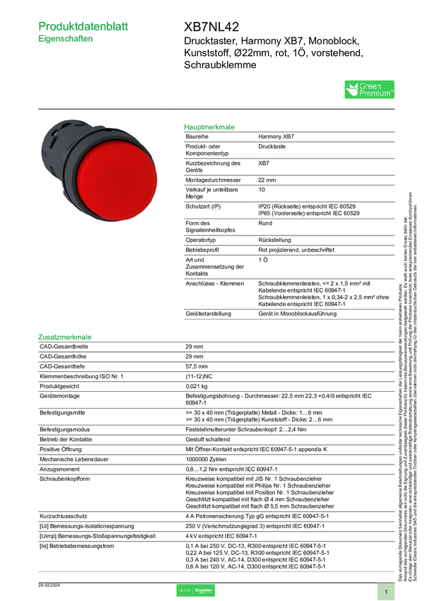 Schneider Electric XB7NL42 Akcesoria rozdzielacza 10 szt.
