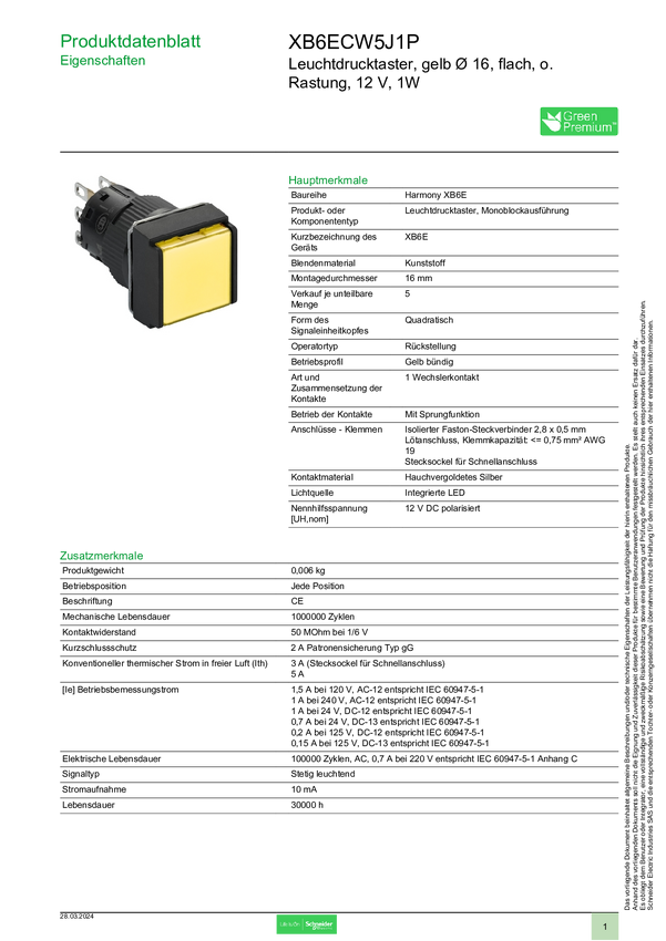 XB6ECW5J1P Schneider Electric XB6ECW5J1P Przycisk podświetlany 5 szt.