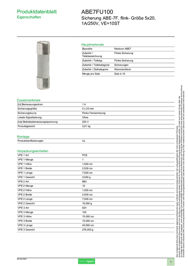 ABE7FU100 Schneider Electric ABE7FU100 Bezpiecznik 10 szt.