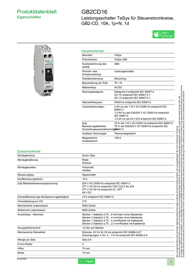 GB2CD16 Wyłącznik automatyczny Schneider Electric GB2CD16