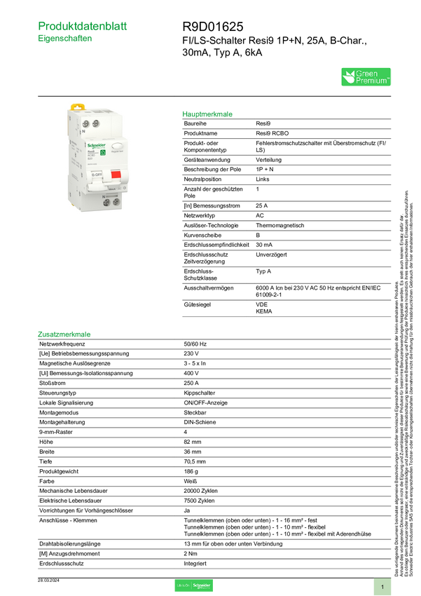 R9D01625 Wyłącznik różnicowoprądowy/automatyczny Schneider Electric R9D01625