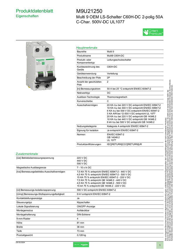 M9U21250 Wyłącznik automatyczny Schneider Electric M9U21250