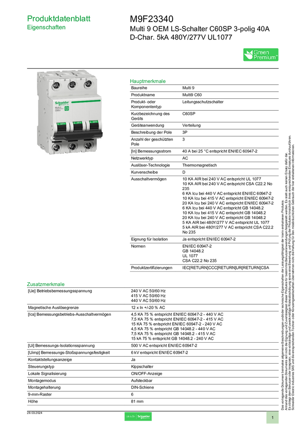 M9F23340 Wyłącznik automatyczny Schneider Electric M9F23340