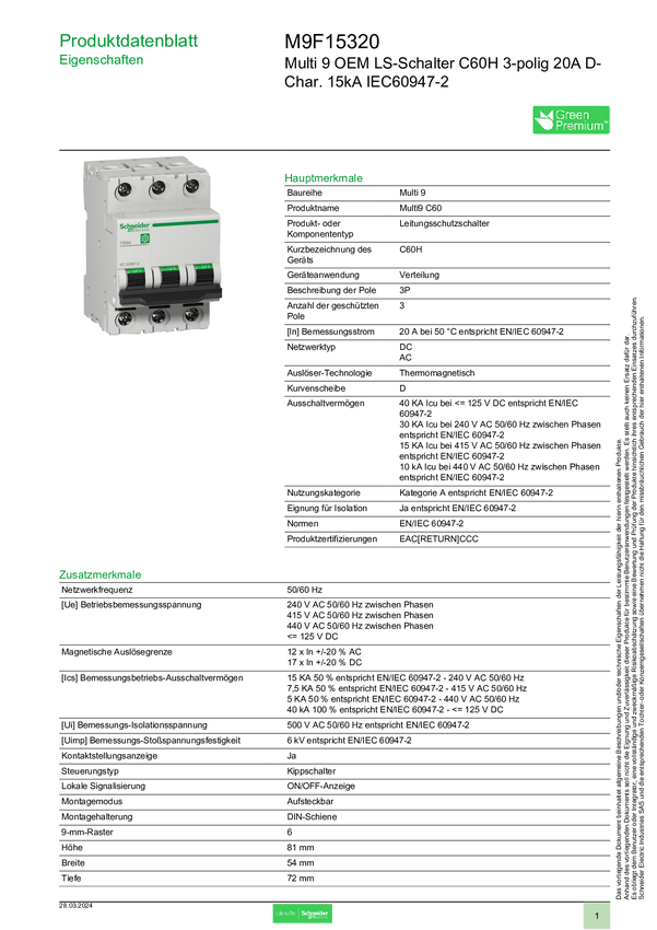 M9F15320 Wyłącznik automatyczny Schneider Electric M9F15320