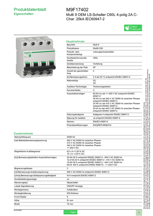 Schneider Electric M9F17402 Wyłącznik automatyczny