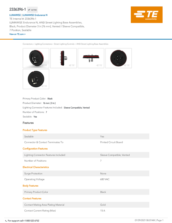 2336396-1 Street Light Connectivity TE Connectivity 2336396-1 TE AMP Street Light Con...