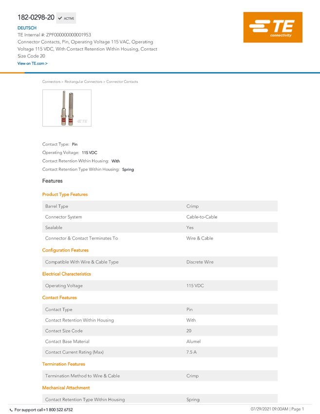 TE Connectivity TE DE Signal ZPF000000000001953, 1x -02050006739433