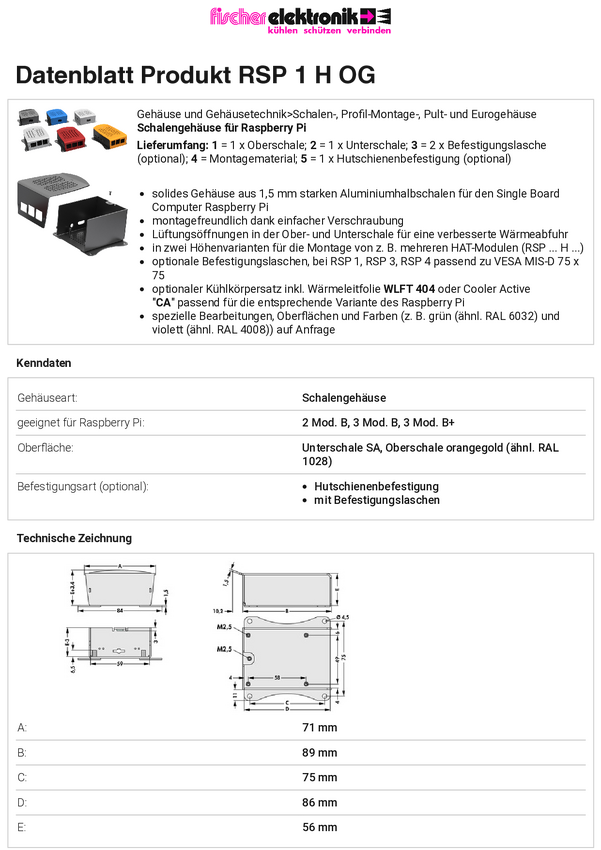 RSP 1 H OG Obudowa SBC Fischer Elektronik Raspberry Pi® aluminium pomarańczowy, czarny...