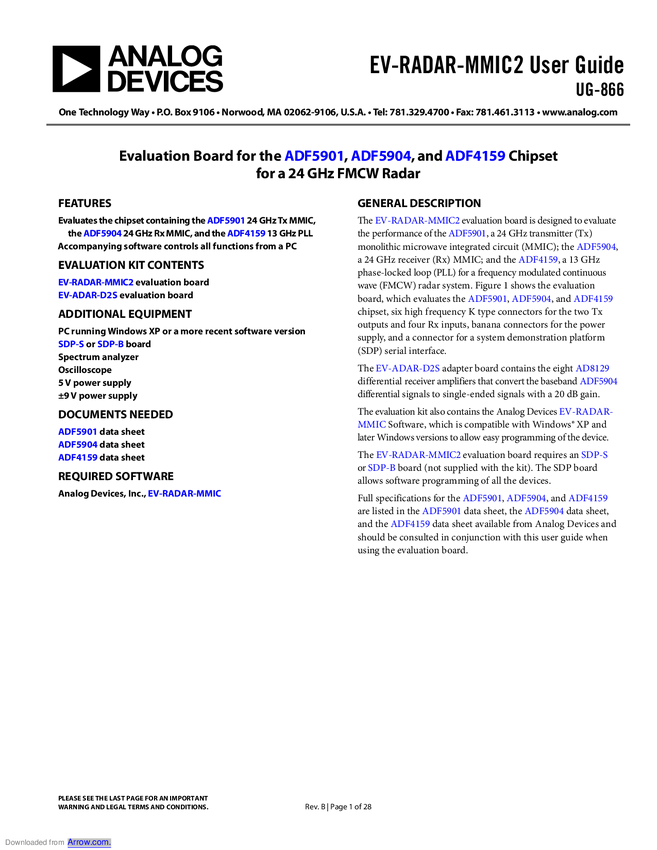 EV-RADAR-MMIC2 Analog Devices EV-RADAR-MMIC2 Płytka rozwojowa 1 szt.
