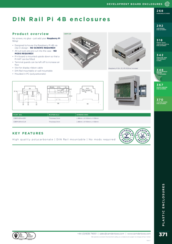 CBRPI-DR-4-CLR-CON Obudowa SBC Camdenboss CBRPI-DR-4-CLR-CON Raspberry Pi® poliwęglan biały